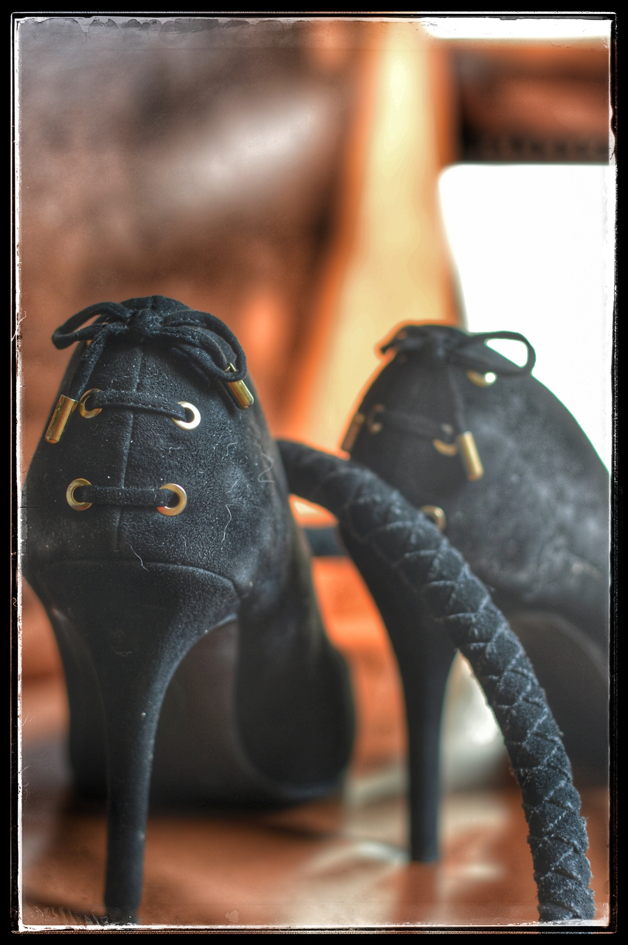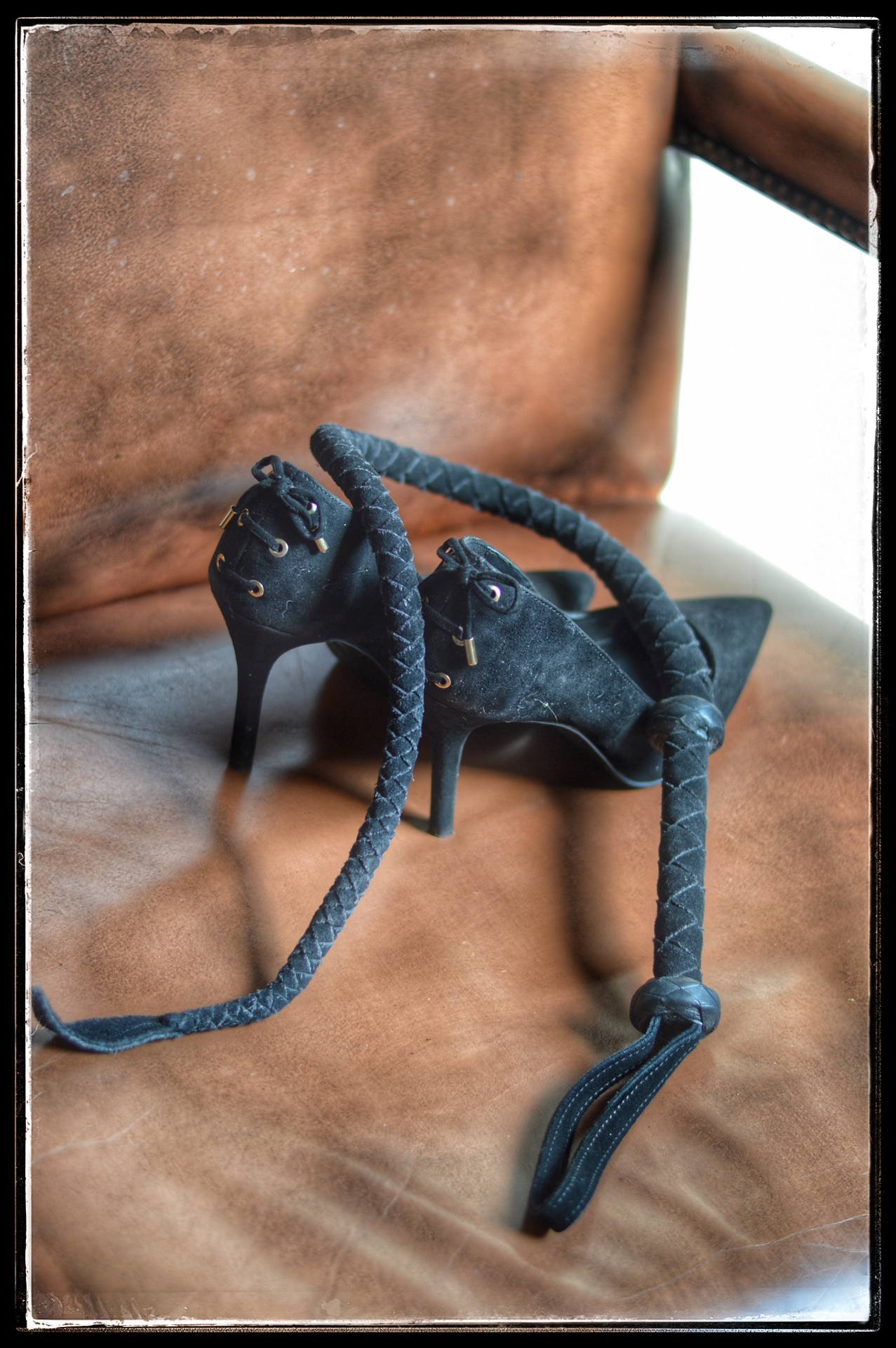 Deze foto’s tonen de tand des tijds en dat mag, want ook dát zegt iets. De schoenen heb ik al een aantal jaar en heb ze het vaakst gedragen. Op momenten dat we samen de diepte in doken tijdens intieme spelmomenten thuis, in vakantie huisjes tijdens onze weekendjes weg en tijdens onze bezoeken aan Place de Nous. De single tail gaat ook al heel wat jaartjes mee, waar ik in het begin er soms echt angst voor had kan ik er nu echt van genieten. Niet op elk moment, ik heb er een specifiek deeltje in mij voor nodig. Het deel dat sensueel kan dansen op de venijnige slagen van deze zweep, het deel dat met dromerige glimlach mijn partner aan kan kijken en woordeloos om de volgende slag vraagt.