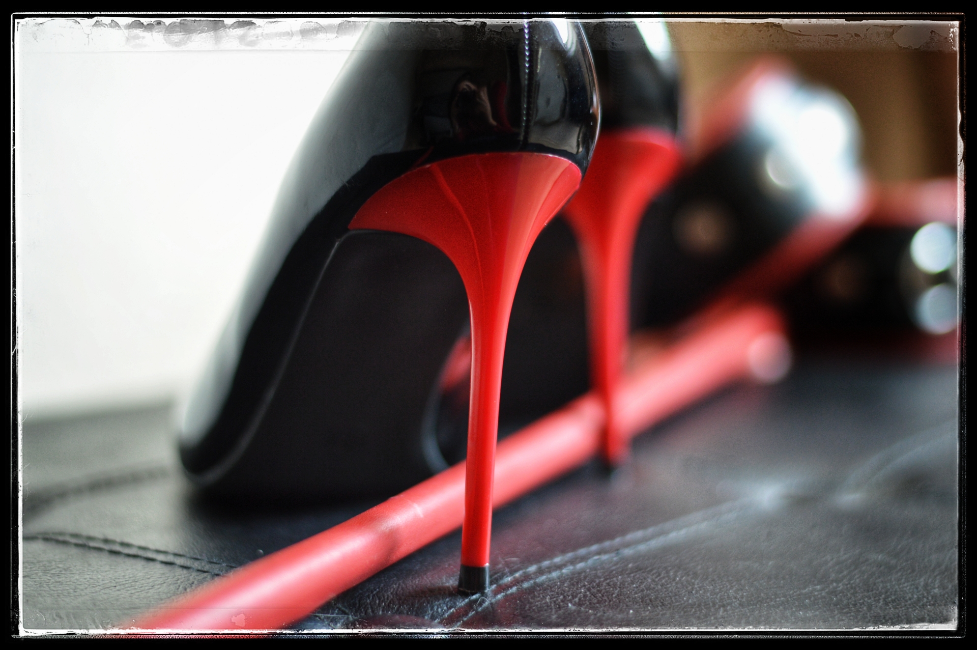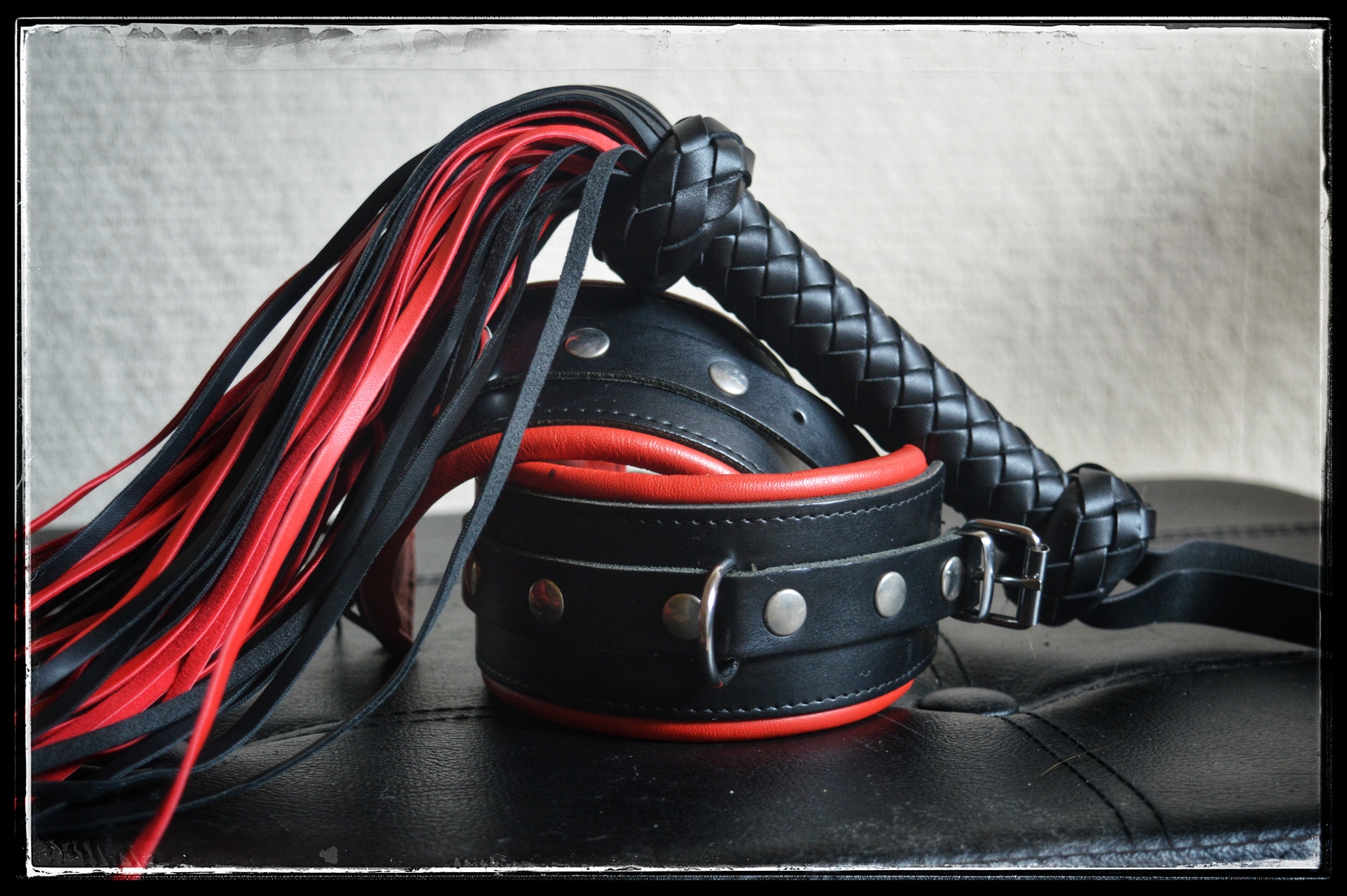 Een tijd geleden deed ik een poging voor een bdsm stilleven, het eerste resultaat is te zien in Monochrome Nuances. Vandaag deel twee, een meer kleurrijk samenspel tussen rood en zwart, met zwart/rode boeien, zwarte pumps met rode hak, een strokenzweep met zwarte én rode stroken en een rode cane. Wanneer ik deze zo samen zie dan laait verlangen op om intens en passioneel mee te bewegen tot de kleuren zwart en rood samensmelten tot een nieuwe kleur.