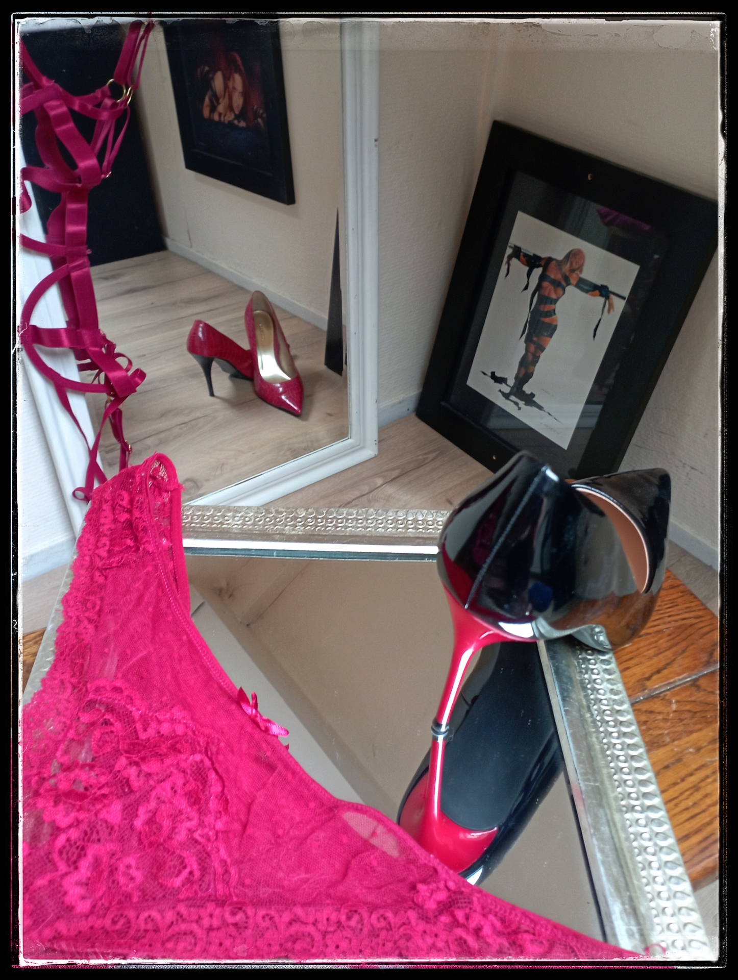 Het creëren van een stilleven, is voor mij het zonder woorden tonen van de fluistering van verlangen. Maar het is ook een bewust moment van stilstaan voor me, stil staan bij wat ik voel, waar ik naar verlang. In dat moment dat ik kies voor de onderdelen die ik gebruiken wil in de fotos’s is de ruimte voor mij om te betreden. Voor mij alleen, alles wat ik voel mag mee in dat moment. Het is nog aftasten en verkennen, ik voel dat ik dieper kan gaan in dit proces maar blijf nog een beetje zwemmen in de bovenste lagen. Dat is niet erg, net als bij het aftasten van de sensuele selfies is dit wat mag, van mijzelf. Ik geef mijzelf deze ruimte, wetende dat in tijd ik die diepere lagen zal opzoeken.